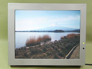 メディアを入れれば、何か出るかな?と、SDカードにjpgファイルを数枚書き込んで、筐体左上の孔に挿して、電源を入れたら、ちゃんとサイクリックに画像表示が出来ました。(左写真)