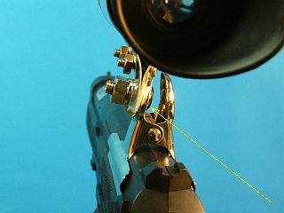 先回は大型で、今回は中型クリップを使ったが、これはギリギリで鉄砲のコッキング部を銜(くわ)え込む事が出来る。