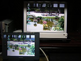 取り敢えず、ノートPC(X21)に繋いでXGA表示させたのが、左最上部の写真。(左写真<クリック>で、XGAの2画面表示)