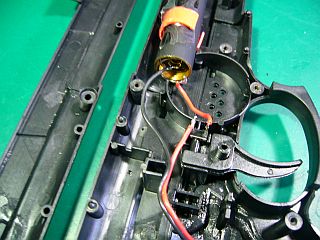 (ま、バッテリは捨てるのを有効利用したのだ!と思い直して、)破壊加工した電池ケースにバッテリを押し込み、簡単な配線を済ませた。(左写真)