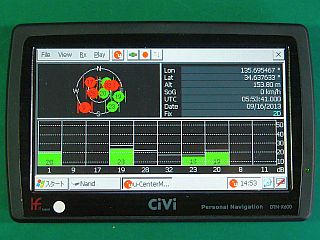 と、突然「u-CenterMobile」が、GPS信号を受け始めた!(左写真)