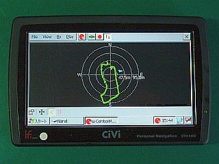 これは、本来地図と組み合わせないと面白味は少ないが、「u-CenterMobile」の中に「Deviation Map」というのがあって、“移動した軌跡”が残るので、ちょっとやってみた!