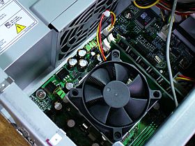 そこで、ファンが大き目の電源に替える事にしました。(→70mmΦ \480税込)