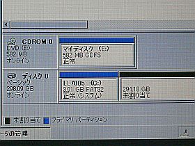 8.“マイコンピュータ−ディスクの管理”で、第2のパーティションをクリアする。_左上写真<クリック>_