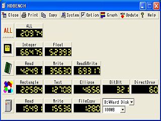 で、動作し始めてから調べたHDBENCHのALL値は、まぁまぁでした。_左上図_