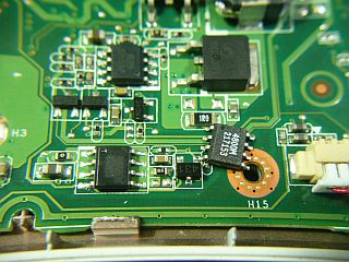 更に、_後で気が付いた_フラッシュ・メモリの取り外し痕の直ぐ傍で、このICは何だろう?と、調べようとしたり。_左写真<クリック>_