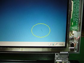 かなり注意して、液晶パネルを被せて閉じたのですが、やはりゴミを除き切れていなかったようで、画面右下付近に細い黒ひげが残っちゃった!_左写真_