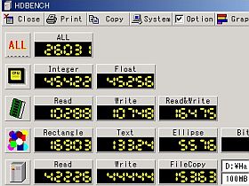 今回載せたCPUは、新らたに買ったPentiumIII 1GHzで、HDBENCHの結果は左図の如く。