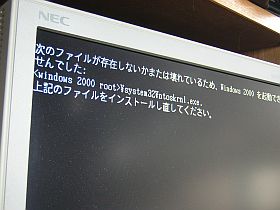 オマケに、_慌てて_CDROMから修復インストールしたWin2000も、まともに立ち上がらな〜い。_左写真<クリック>_