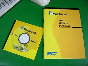このマザボは、一度、Aptivaへの搭載で検討し、Aptiva E 2179-50Lに惜しくも競り負けたものですが、資料やドライバ用CDもあるし、変なロゴも出ないので、このFR33にしました。_左写真_