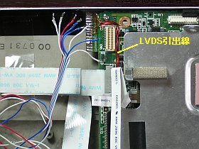 先々回、一応PC側のLVDS出力の取り出し口を見付けたつもりだったのですが、上手く行かなかったのはこの場所が不適だったのかも知れないと考えて、今回はコネクタ・ピンから直接取り出す事にしました。