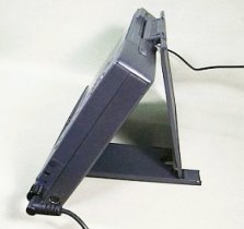 この機械は、立てるために、後ろに支えを広げます。横から見ると、三角柱。画面も大きいので、どうにも置き場所に困りました。色々やってみましたが、結局は助手席に。"しかし、見難い!"