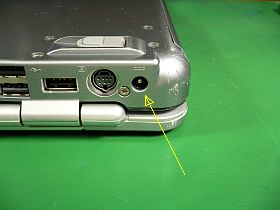 早速、キーボードを外し上蓋を取った状態_実は、ここまでしないと、HDD交換も出来ないらしい!?_で、DCジャック部を見たら、確かに半田剥がれ/端子分離が起きていました。_左上写真<クリック>_