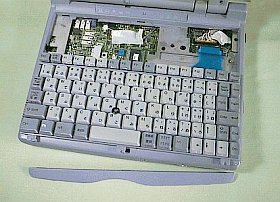 このマシンも、AMiTY VPのようにHDDはずっと奥にあります。ちょうど、キーボード「TAB」や「CapsLock」キーの下で、基板の裏側です。取り替えるには、かなり手間が掛ります。(やる気は無いけど_