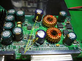 日本橋で、新しい電解コンを買って来ましたが、最適なのが無かった!...けど、兎に角、8個全部入れ替えました。_左写真<クリック>_