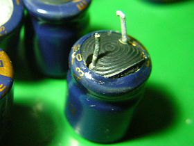 これらが基板上に留まっている時でも、かなり浮き上がっていましたが、半田付けを外して見たら、下部も膨らんでいるのがよく分かります。_左写真_