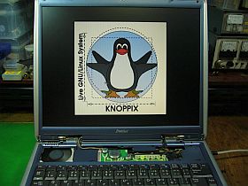 取り敢えず、Knoppixを走らせたら、途中で停まってしまいました。きっと、相性が良くないのでしょうね。_左写真_