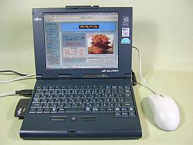 FMV-NC313の「クイックポイント」は、それらの配置がもうひとつで、使い難くかったのですが、マウスにするのにわざわざ「コネクタボックス」を探すのも煩わしいし、どうせ後部に大型バッテリを着けているので、具合悪し!