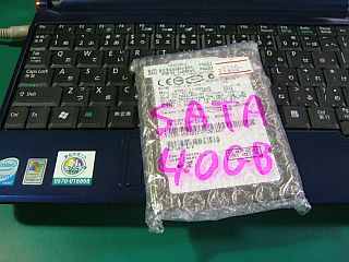 暫く欠乏していた_中容量の_SATA-HDDを買って来たので、先日買ったAspire one ZG5に取り付け、WinXpを組み込んで働かせて見ました。_2.5"SATA-40GB \880税込み_