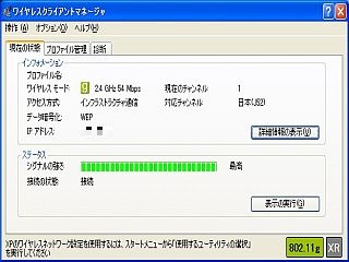 _左図は、gの54Mbpsで接続中のマネージャの表示_