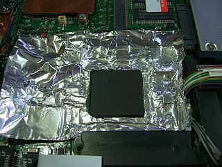 で、クッキング・ホイルを使って、“ガードもどき”を作り、裏に両面テープを貼り付けて留めました。_左写真_