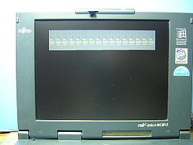 今では、Win98で正常にSVGA(800x600)、6.5万色の表示が出来ています。ただ、画面が大変暗いので、本体の青黒さと相俟って、見栄えのしないマシンになっています。