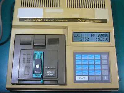 並行して、PROMが焼ける(内容を書き替える)古物「PROMライタ(Minato Electronics製 1890A」を見付けて購入した。(¥3,200送料込み)