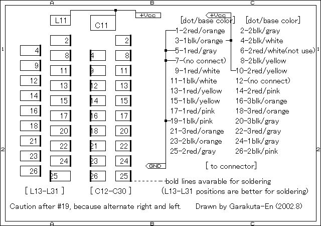 Other (signal and control) wires should not cut a little, because enough length are required for the soldering operation. The above right figure shows the soldering positions. The bold line sides of L13-L31 (in the figure) are suitable for soldering.