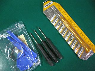 iPhone4、4s専用星型ドライバ」は、やはり専用品(0.8x25mm)の方が持ち易くて良かったのだが、これだけでは内部の分解作業には用が足りなかった。(図9右上 総費用¥392送料込み)