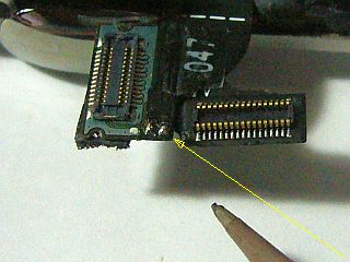分解状態のまま、かなり繁々と「バックライト配線部」を眺め、あれこれ補修方法を考えてみたのだが、どうも上手い手を思い付かず。(図6<クリック>)