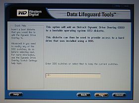 その中の「Data Lifeguard Tools」をFDに展開して、nx9000にセットしておいた160GBに、DDOを書き込み。(左写真&左写真<クリック>は、立ち上がり時のDDOメニュー)