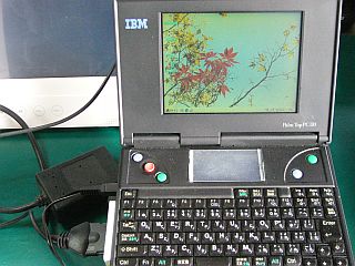 中を開けて、あちこち弄っていたら「液晶表示」が出来るようになり、VGA−ビデオ変換をすれば、PC110の出力を「AV入力」経由で表示させることも出来た。(図1)