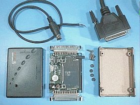 「Bi-Directional」レベル以上のプリンタ・ポートなら、問題無く繋がるようで、CFはSCSIのリムーバブル・ディスク扱いになっています。
