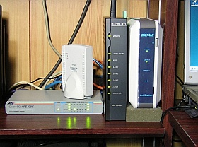 このHDDをこの場所に置くのがいいのかどうか、まだよく分かりませんが、比較的コンパクト(当然か?)なので、LAN関連の所に一緒に並べてみました。(<クリック>で少し前のレイアウト)