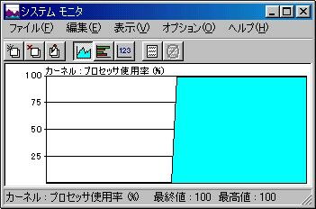 (何でも、このプログラムは、引っ切り無しにCPUにHLT(Halt)命令を与えるという話らしいんですが、どうやるんでしょう? ほぅ、これを働かせると、CPU使用率は100%になってますね)