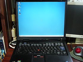 LCD(液晶パネル)の輝線不良があったので、一旦放り出していたのですが、へろへろさんから頂いたThinkPad R50eのLCDパネルを流用して、正常で明るいものに出来たので、改めてこのThinkPad R51をサブ機にしました。左写真。感謝!<(_"_)>