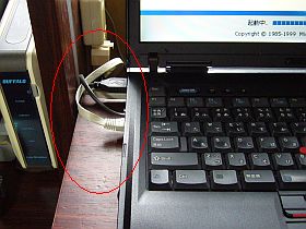 サブ機として所定位置に据えてみたのですが、左横からコネクタが突き出ていると、かなり煩わしいですね。(左写真)