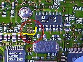 作業は、クロック・ジェネレータ「9054」の1ピンを浮かして、GND(C97,C96などの片側)に接続。