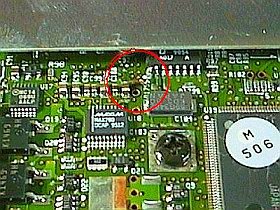 加工箇所は、メイン基板のちょうど中央。(手前が、通常使用時の手前)