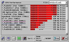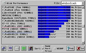 左図の2つは、WindSockで調べたCPUパフォーマンス(左)とHDDパフォーマンス(右)です。