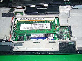 他方、内蔵メモリは1GBと結構な量のカードが載っていました!(左写真。無駄を承知で、取り敢えずPC2/DDR2-512MBを足しておきました)