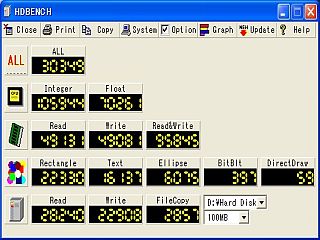 HDBENCHの結果は、ALL値30Kで、なかなか良い成績です。