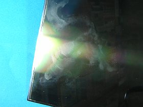 しかし、どうやらこれだけでは不十分だったようで、乾かした後、左の写真のように液晶パネルに模様が残ってた!