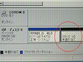 これを、一度「未割り当て状態」に戻し、Win2000が動き出してから、再確保/再フォーマット。