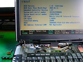 上手く電源が入るかどうかは、裸基板だけの状態でも、LEDの点灯の様子から分かりますが、取り敢えず、組み立てて、様子を見たのが、左写真。ちゃんと起動して、BIOS設定画面へ。