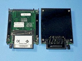 このアダプタには、2.5インチIDE対応でCF搭載用1、2スロット・タイプの2種類やマイクロドライブ搭載用1、2スロット・タイプの2種類などがあるそうですし、勿論、3.5インチ用もあります。