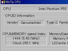 現在、Win98で静かに(!)動いてます。けど、65Jの型番は、クロックは200MHzのはずですが、265MHzになっていますよ。どうやら、既にクロックアップがなされているようです。(これでは、クロックアップの楽しみが半減だ?)