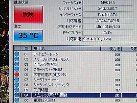 これは、「スピンアップ再試行回数」がやたら増えていたようですが、やはり、“SMARTエラー”が出るものは、当座は動作していても、長期的には使えないようです。(左写真)