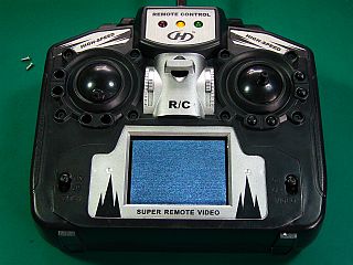 コントローラを開けてみたら、受像&表示回路は、主基板からは独立していて、繋がっているのは電源線(2本)だけでした。それに、短いアンテナ線が1本!(左写真<クリック>)