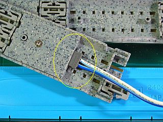線路同士の結合は、プラスチックの可塑性を利用した「機械的な結合」と、真鍮バネを使った「電気的な接続」の両方が、巧く出来るようになっています。(左写真<クリック>)